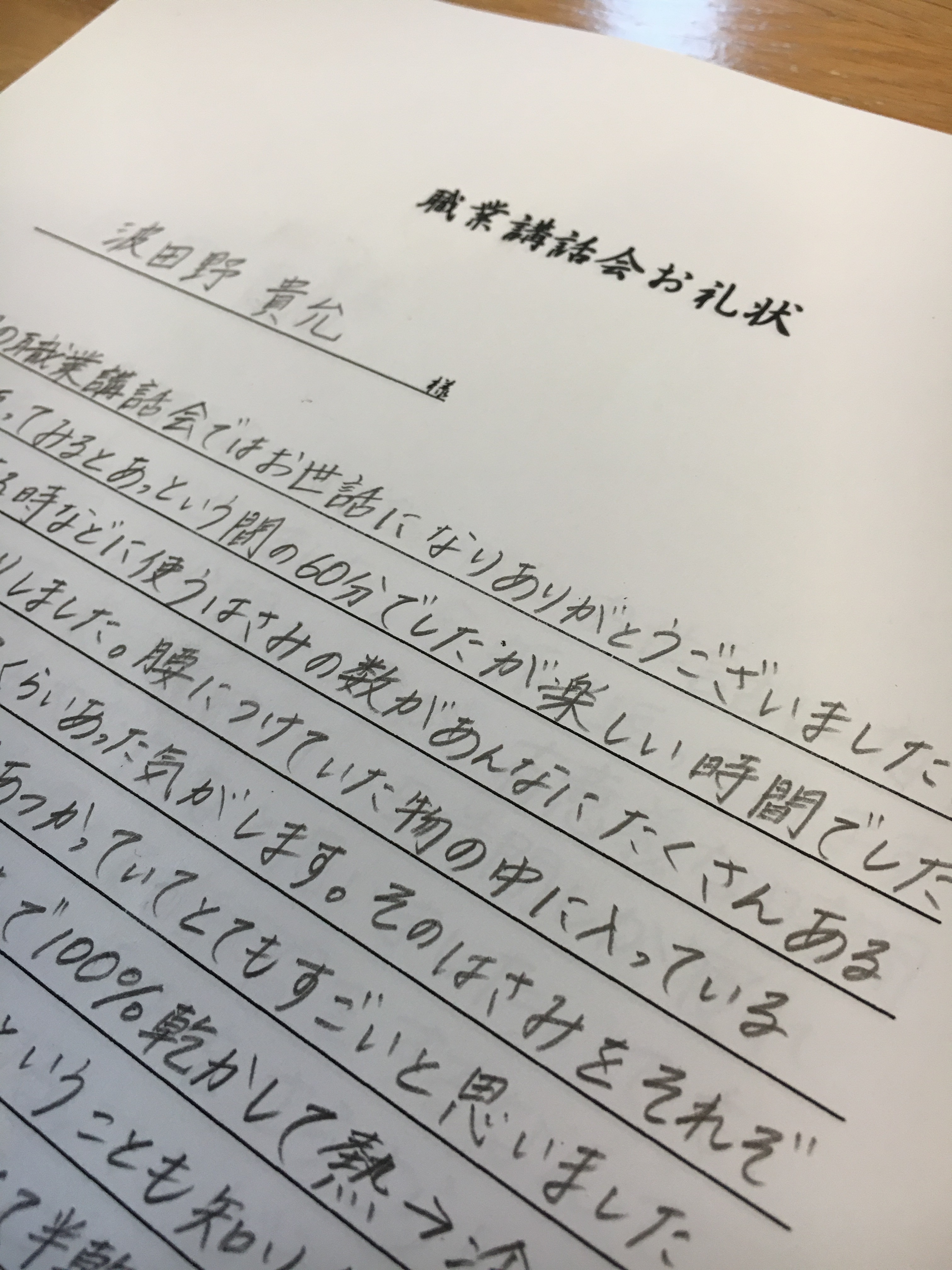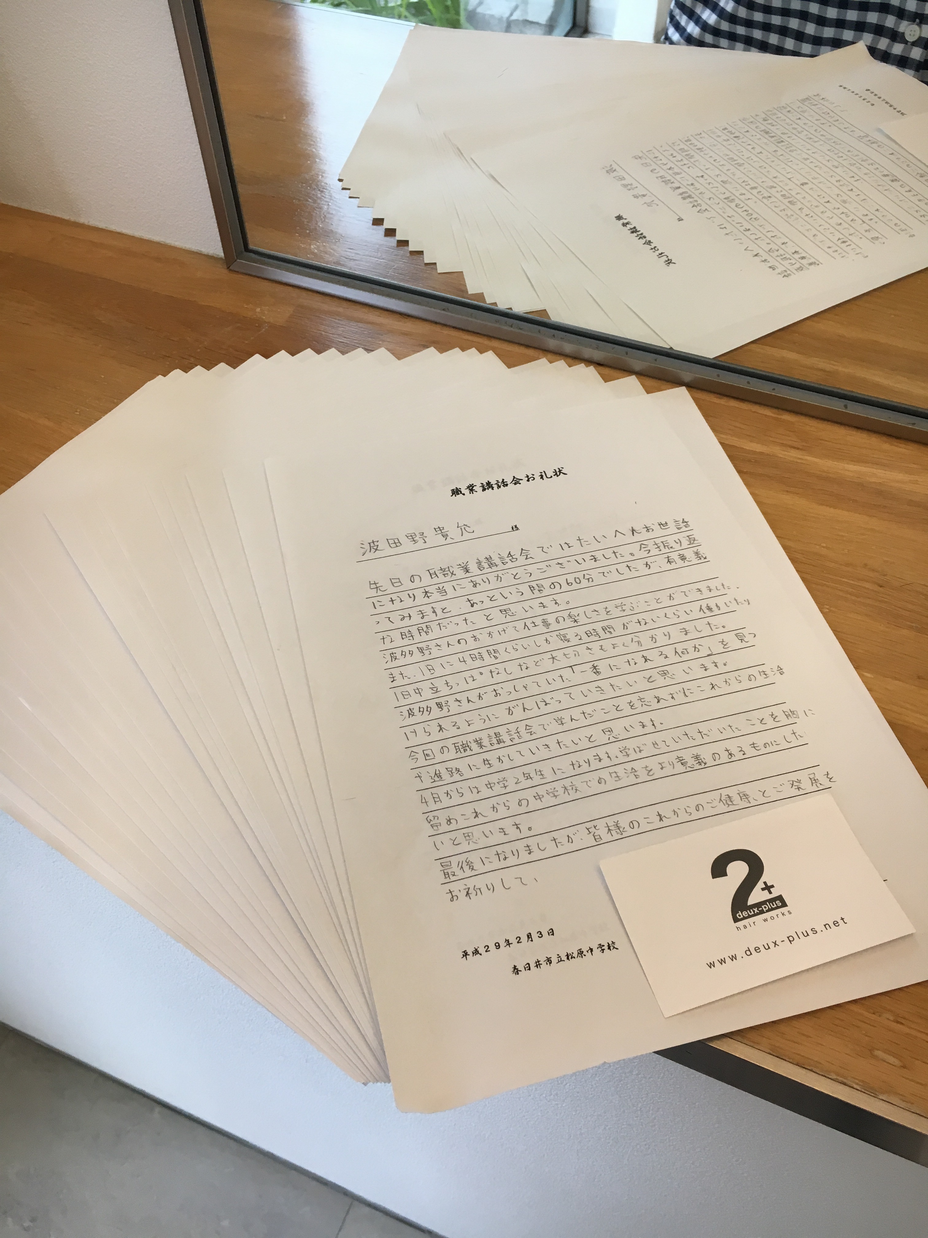 僕のお話を聞いてくれた生徒さんから お礼状が届きました!!