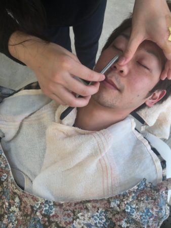 そしてスタッフの佐藤は、お顔剃りの練習に入りました!