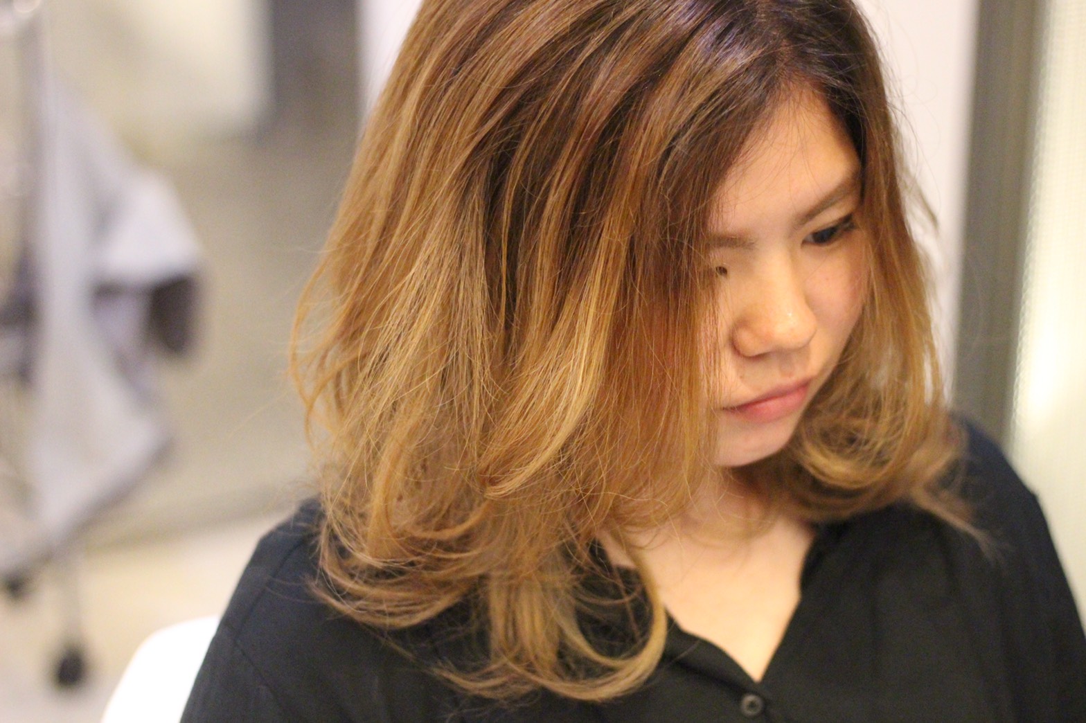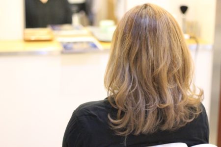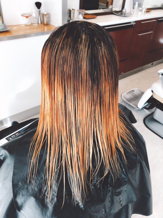ただ全体にブリーチしてしまうとカラーの褪色や伸びて来た髪の黒い部分が気になってしまうので、今回はバレイヤージュという技法を使いました!