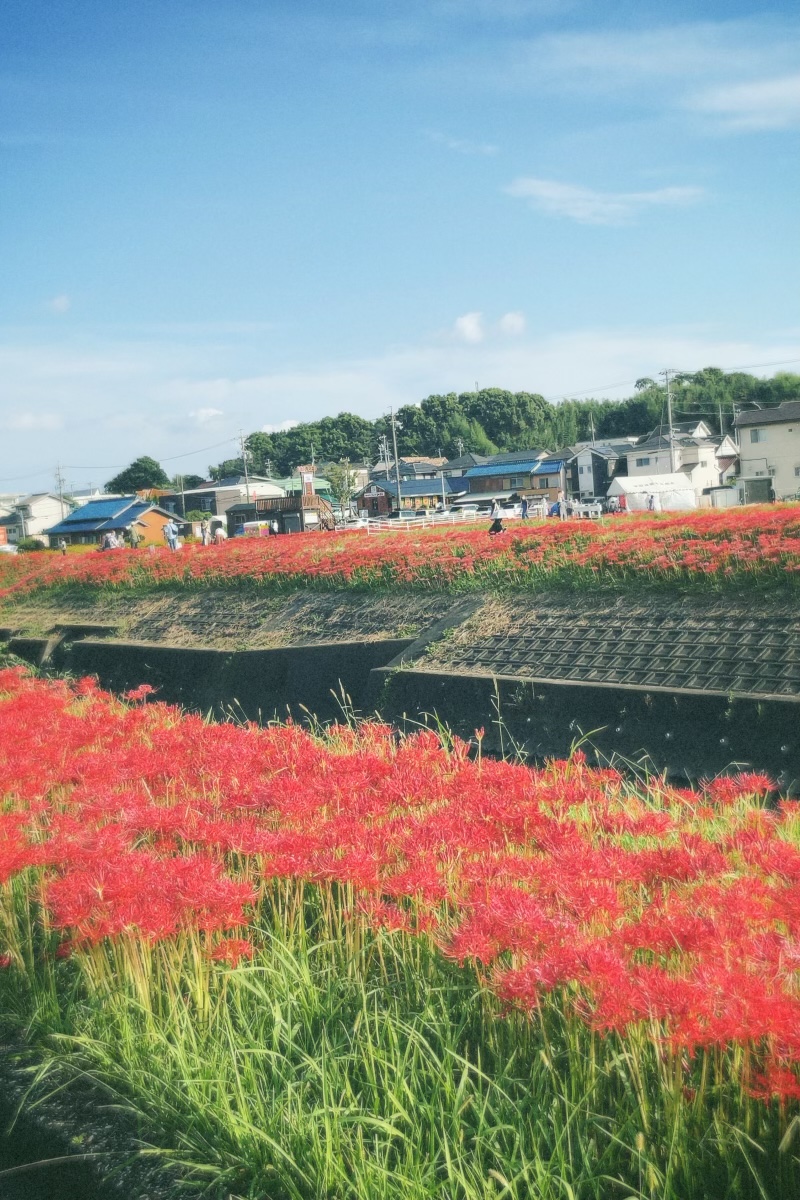 川沿いにある満開の彼岸花を見てきました。
