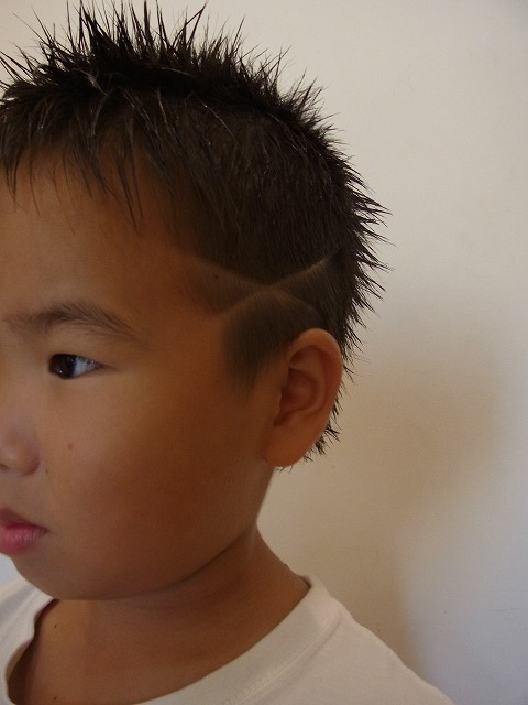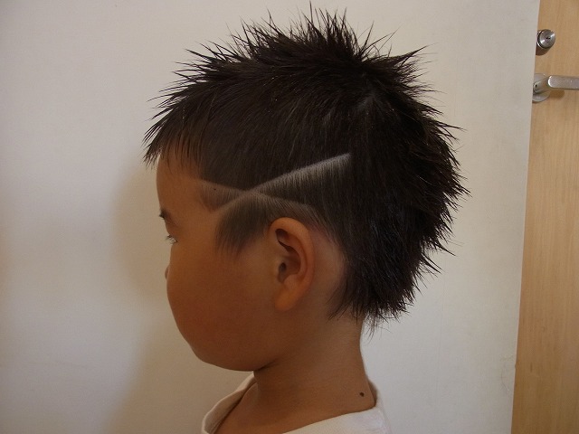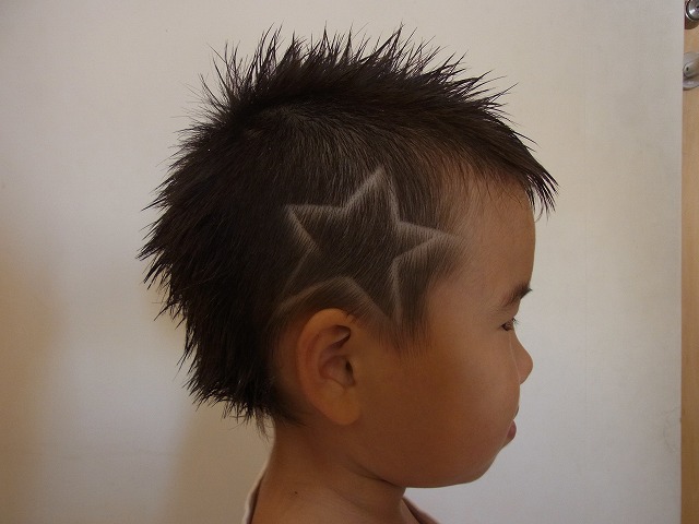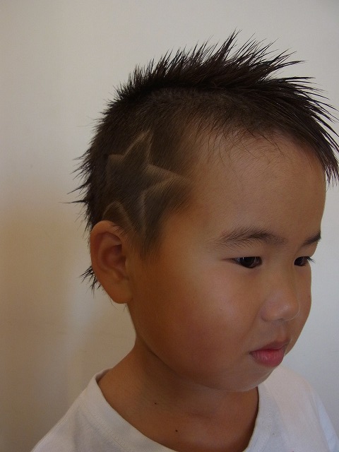 今回は、空手の試合前という事で気合いを入れたいというニーズにお答えして ラインを入れました! 右サイドを短くカットして星型のラインを入れました!